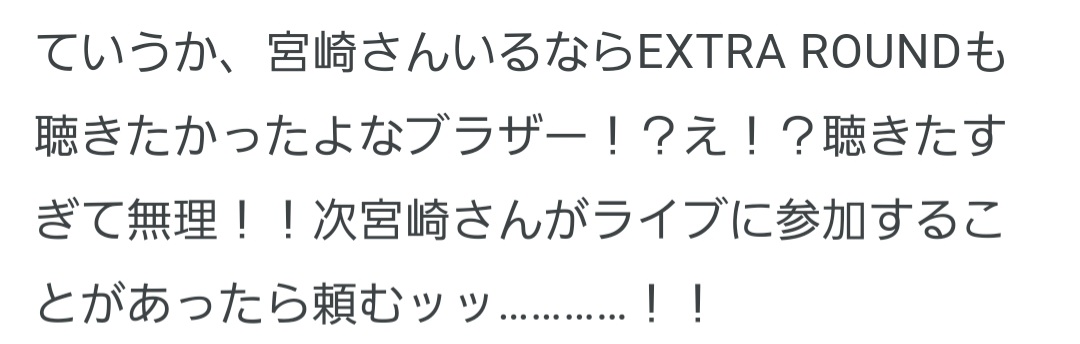 てかバンドメンバー今後どうしていくんだろうね!?しばらくは宮崎さんバンマス固定で周りのメンバーをちょいちょい入れ替えるスタイルでいくのかな🤔