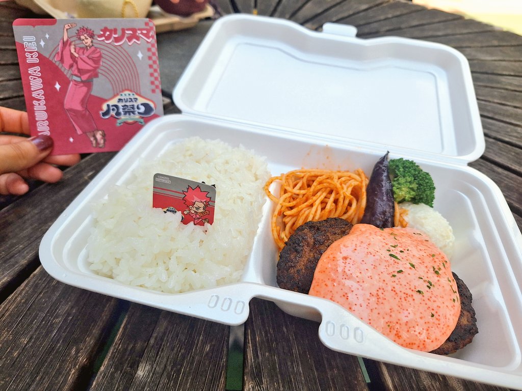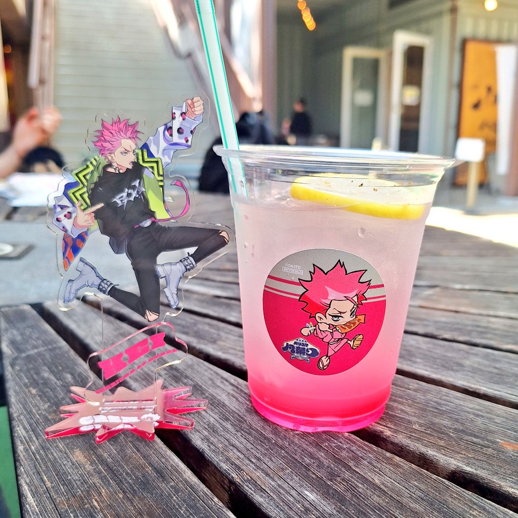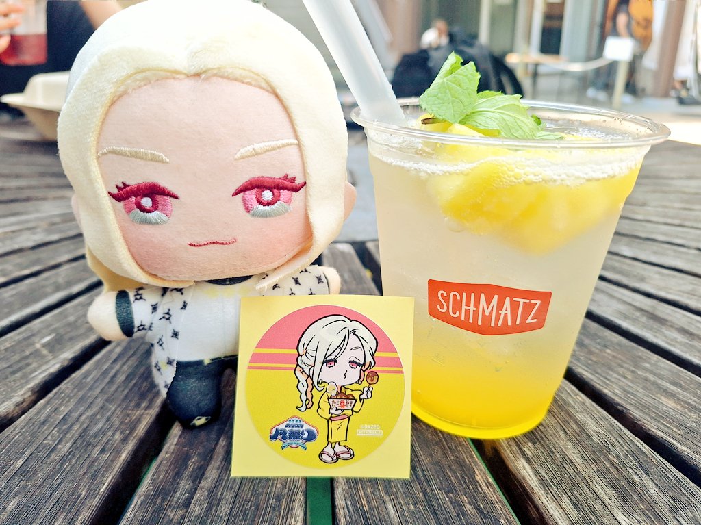 いろんな店でコラボメニュー出しててひとつのお店の席にい続けるのは難しそう(ナンジャみたいなイメージ)だったから、外の日陰になってる席を拠点にしていろいろ買いまわって食べた。ってわけでまずは飲み食いしたものの写真を載せとく🍴